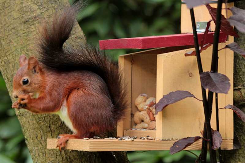 Best positioned so you are able to see from a window, where you can observe the squirrels without being seen, as they are very private creatures and easily disturbed.